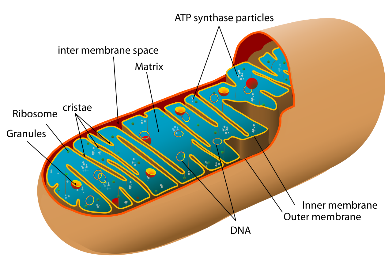 “The diagram shows a cross-section of a eukaryotic cell mitochondrion.” Image: Mariana Ruiz Villarreal LadyofHats, Wikipedia .