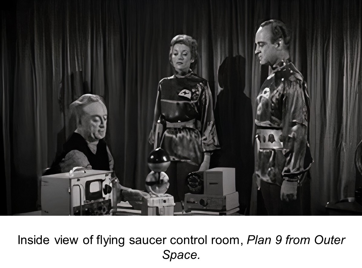 - Inside view of flying saucer control room, Plan 9 from Outer Space.