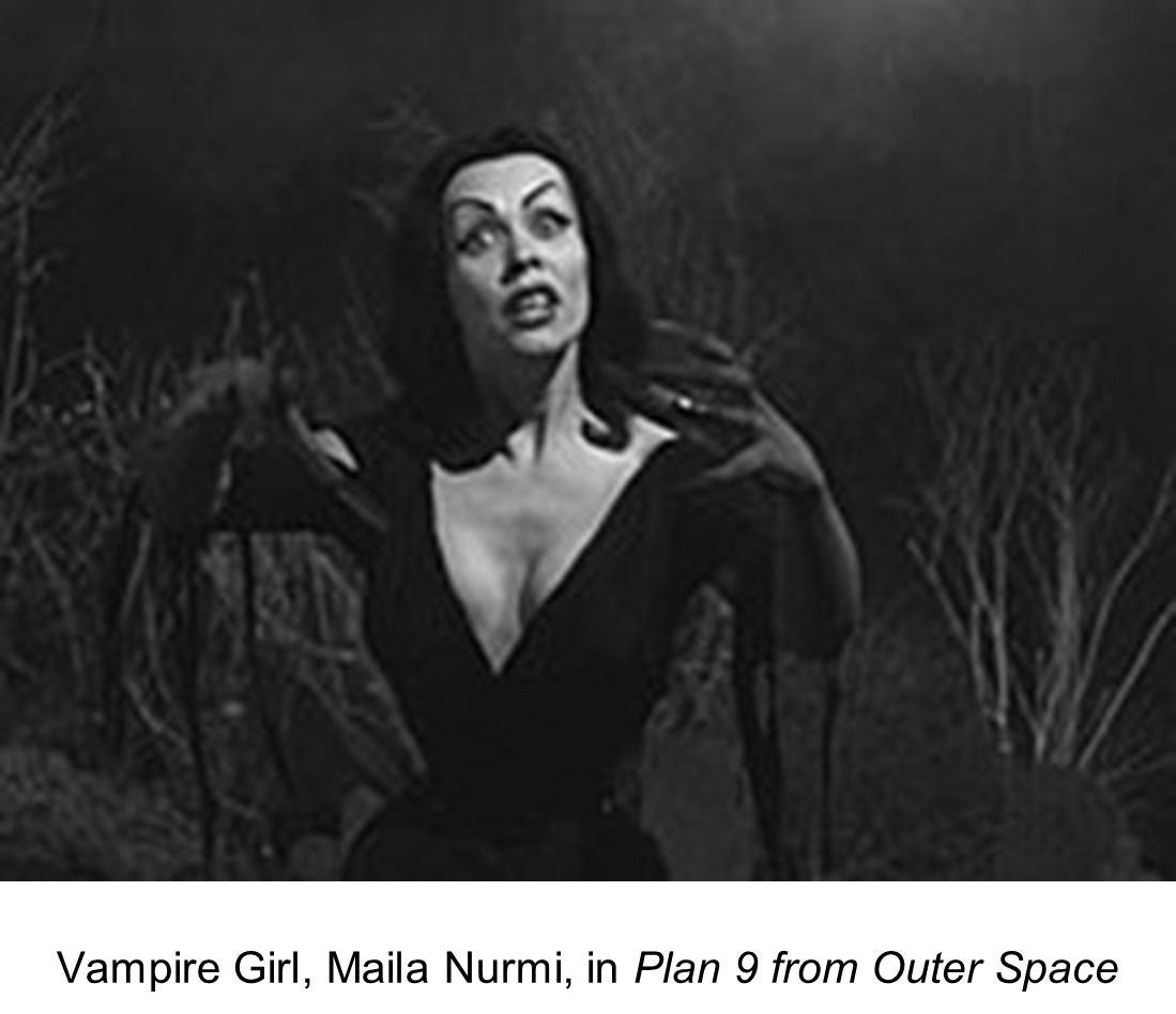 Plan 9 made no profit for its investors, but it did manage to show up as a “filler” for many double-bills in theatres and drive-ins. It was eventually sold to television, often for a late- or late-late night movie, and eventually it became a cult classic. The film lived on in a 1994 film Ed Wood, depicting the making of Plan 9, which was produced on a US$18 million budget but only made US$5.9 million. That film was a critical success and went on to win two Academy Awards. All thanks to Ed Wood!